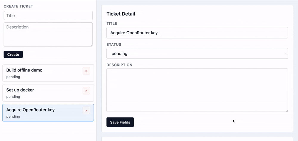 This is a simple ticket tracking app with certain offline capabilities: